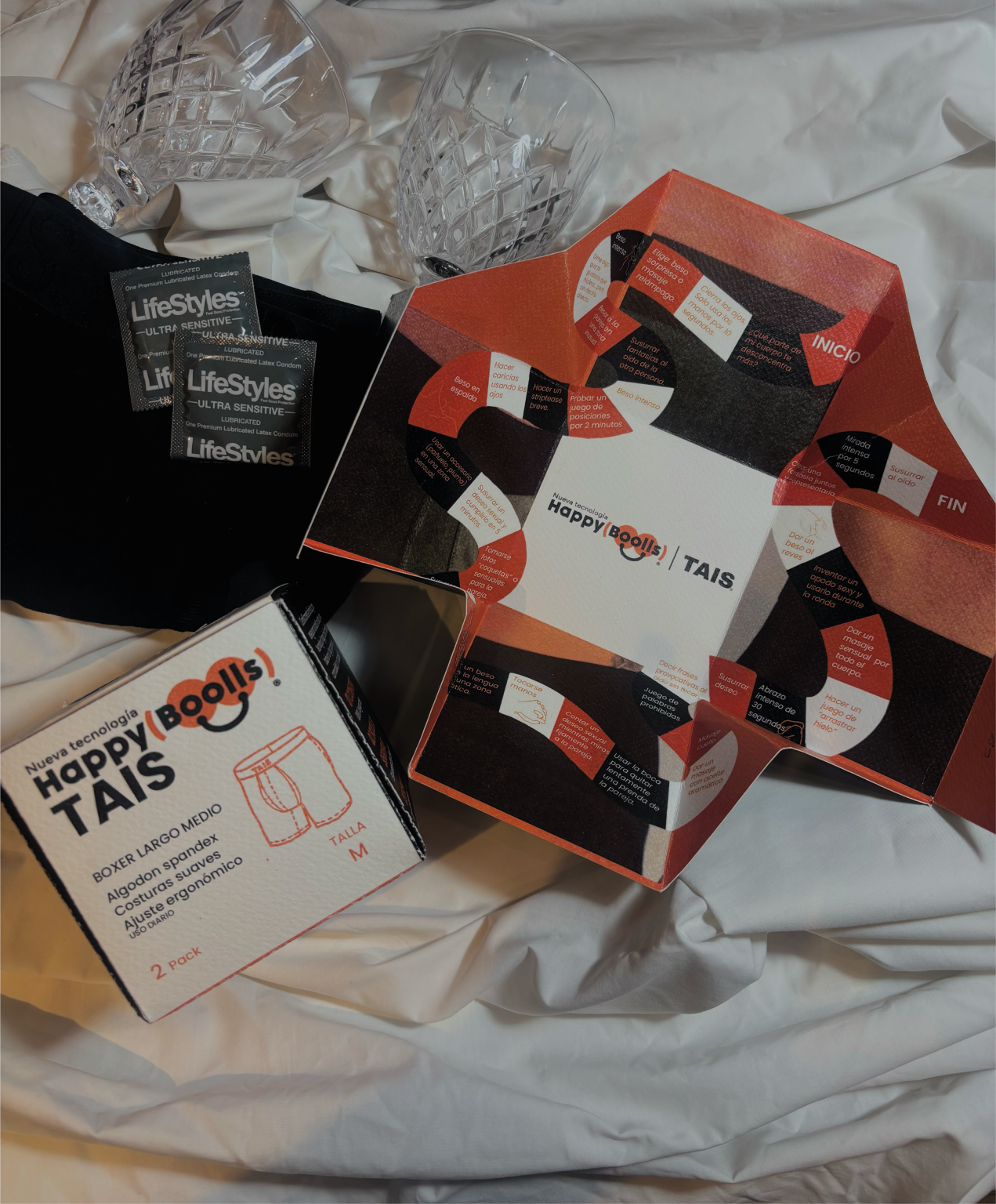 Este proyecto de packaging fue desarrollado para la Marcs TAIS por Monarch, pensada como mas que un regalo, una invitación. Busque transformar una prenda cotidiana en un gesto coqueto y divertido dentro de la relación de pareja. Esta dirigido a mujeres entre 28 y 35 años que buscan sorprender a sus parejas con un detalle que combine calidad, humor y sensualidad implicita. A través de un lenguaje visual minimalista, un tono jugueton y recursos de doble sentido, el diseño propone una experiencia de unboxing memorable donde el packaging no solo protege el producto, si no también genera complicidad y expectativa. El sistema grafico combina tipografías, fotografías realistas y juegos de paridad para crear un guiño sensual sutil.